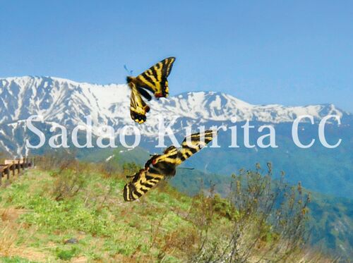 5月15日、長野県白馬村神城にてギフ×ヒメギフチョウの交雑個体を竹ノ内博明氏が撮影されました。 竹ノ内氏はイギリス在住で今回始めて日本産のギフ・ヒメギフチョウの撮影に訪れたとのことで、まさしくビギナーズラックそのもの。おそらく当地成虫の1/100〜…